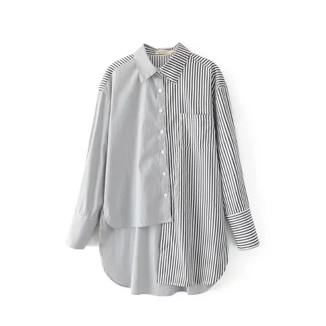 2017 новая женская мода и ветер осень универсальная Асимметричная однобортная рубашка в полоску с отворотом