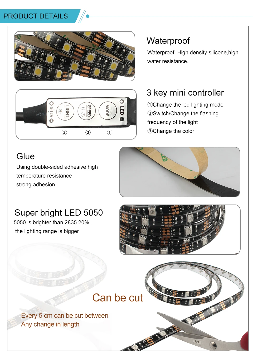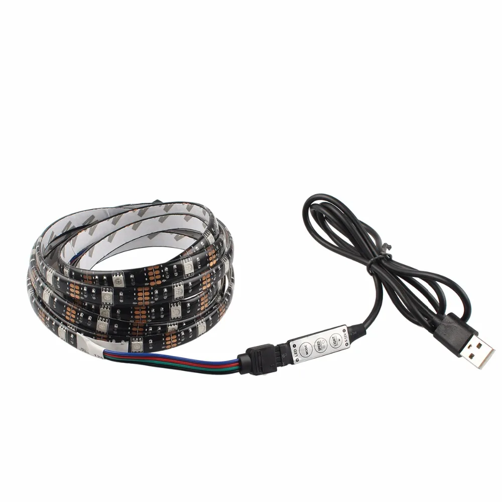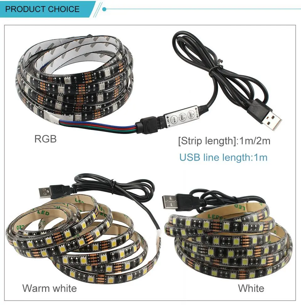 USB Светодиодная лента 5 в 5050 RGB теплый белый водонепроницаемый 1 м 2 м с 3 клавишами контроллер тв фоновое освещение Светодиодная лента компьютер сделай сам
