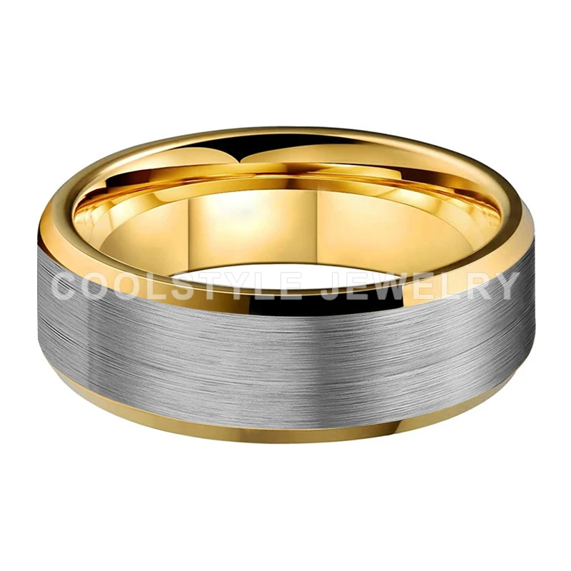 | Название продукта | 8 мм 6 мм мужское женское золотое вольфрамовое кольцо обручальное кольцо со скошенной щеткой отличное качество удобная посадка | |