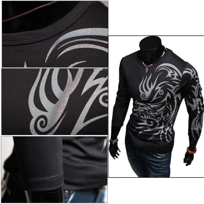 Мужская футболка с длинным рукавом и круглым вырезом с принтом «татуировка дракона», Приталенный топ для отдыха H9
