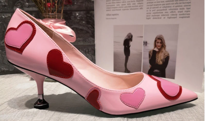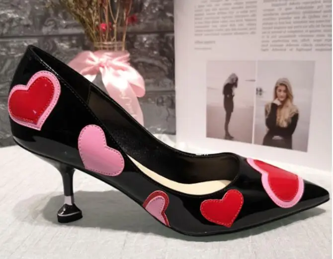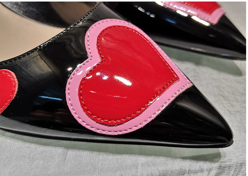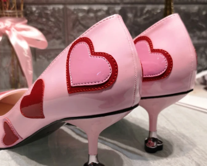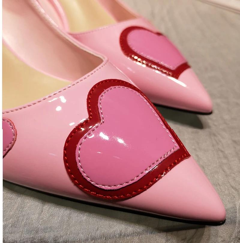 Carollabelly/розовые туфли с сердцем; Женские разноцветные туфли-лодочки; Милые свадебные туфли на высоком каблуке с острым носком