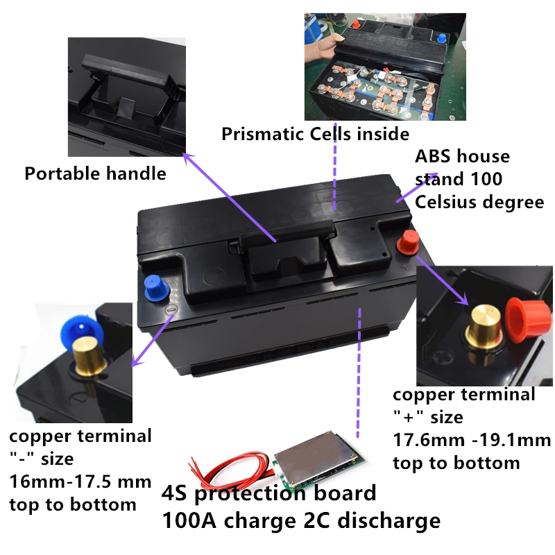 Советы: Эта аккумуляторная батарея 12 В LiFePo4 может быть изготовлена из 2 серий, чтобы получить напряжение не прошло 30 В, что поведение нарушит BMS, даже сломает батарею.