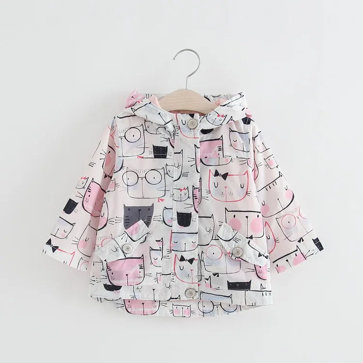 Новинка 2017 года; Куртка; Весенне-Осенняя детская куртка; Одежда для маленьких девочек с принтом кота; Детские топы; Верхняя одежда; Детская одежда