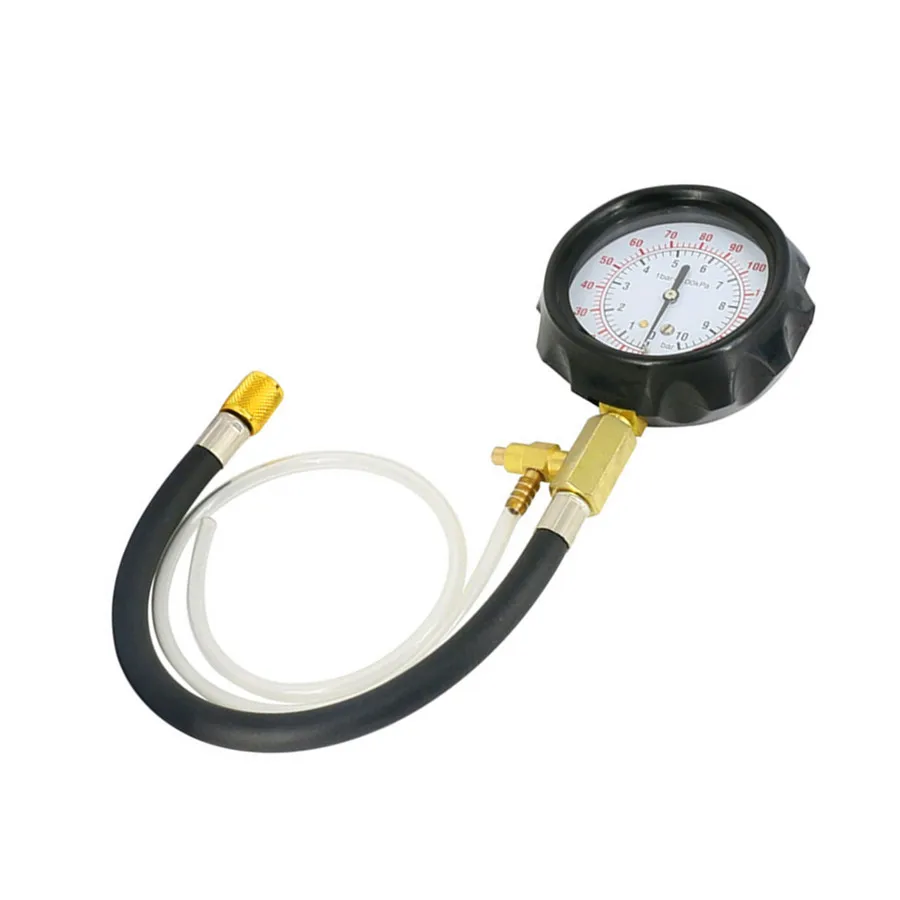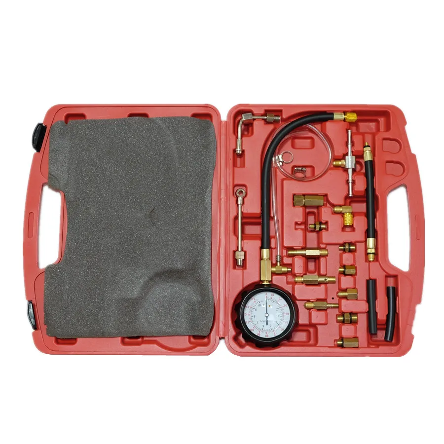 Манометр топлива TU-114 для ремонта автомобилей.Оснащен датчиком ø90мм с двумя шкалами (psi и bar), показания от 0 ~ 140psi и 0 ~ 10barВ комплект входит медный адаптер. Полный комплект адаптеров и фитингов для современных систем впрыска топлива в испытательном порту Schrader.Компоненты оснащены системой быстрого сцепления и предохранительным клапаном для предотвращения непреднамеренного слива топлива под давлением.Клапан сброса давления с длинным сливным шлангом обеспечивает безопасное извлечение топлива.Реальные фотографии: