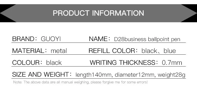 Цвет: черный Вес одной ручки: 28 г Подарочная посылка Вес ручки: 80 г Длина: 14,4 см