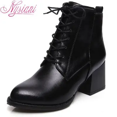 Nysiani/2018 женские ботильоны черного цвета на низком каблуке, фирменный дизайн, круглый носок, зимний квадратный каблук, модные женские мотоциклетные теплые ботинки