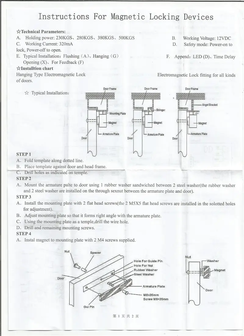 1x180 кг Электрический магнитный замок