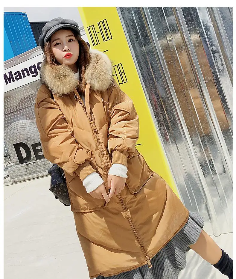 Пуховик женский зимний с воротником из натурального меха ягненка и поясом |