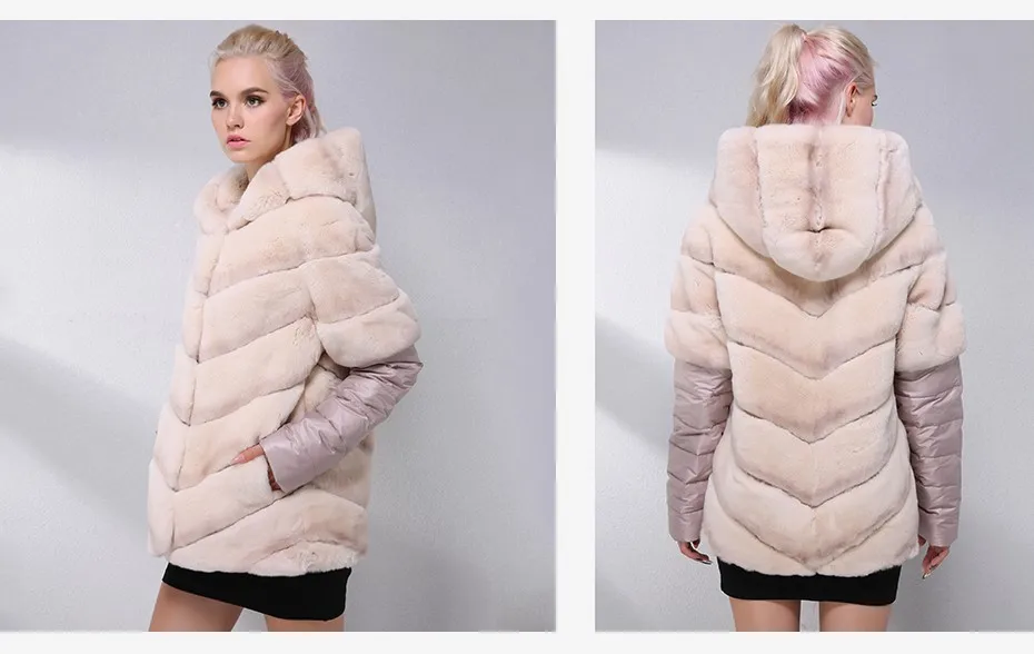 JEPLUDA Высокое Качество Шуба Из Кролика Рекс Мех Кожаная Куртка Женская Меховая с Капюшоном Съемные Рукава Пальто Зимнее Женское Верхняя Одежда Для Женщин Зима Женская пуховая куртка съемный RY1703