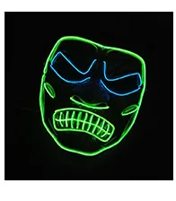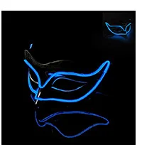 Name:EL MaskColors: 10 Colors Available(Transparent blue/ Blue/ Red/ Pink/ Orange/ Yellow/ Lemon green/ Green/ White/ Purple)Product type: Costumes AccessoriesGender: UnisexMaterial: PVC Plastic+EL WireVoltage: 3V(2AAA Batteries)Powered by: 2-AAA Batteries( not including)Inverter Function: Steady on/Flashing/Sound Active/OFF(With Button switch)Item Weight: 70gApplication: Christmas,Halloween,Easter Day,Carnival,Birthday,Wedding and so on.Packet Including: