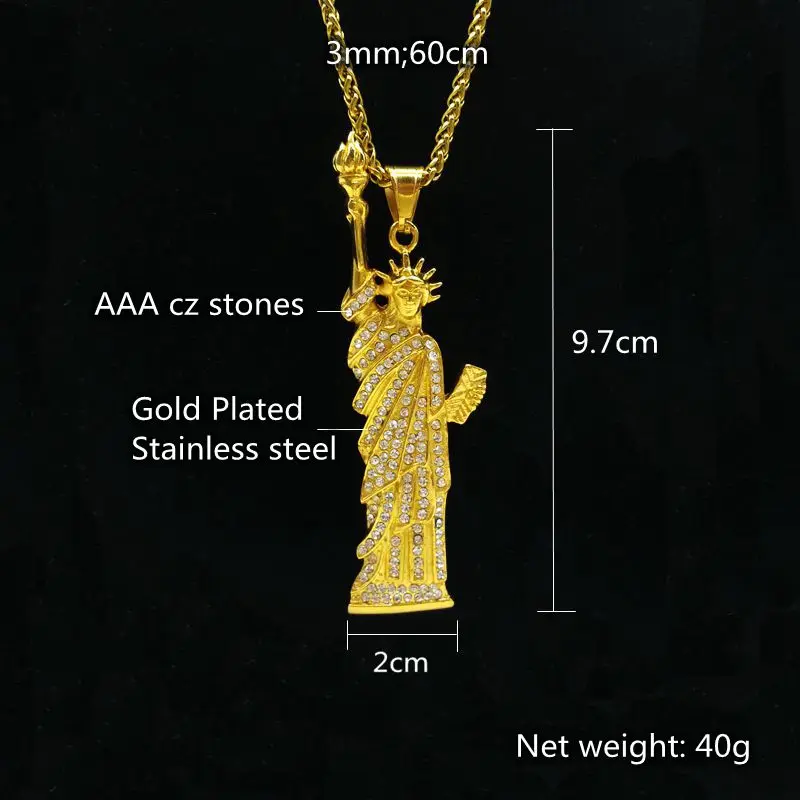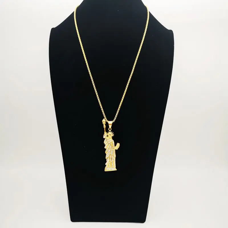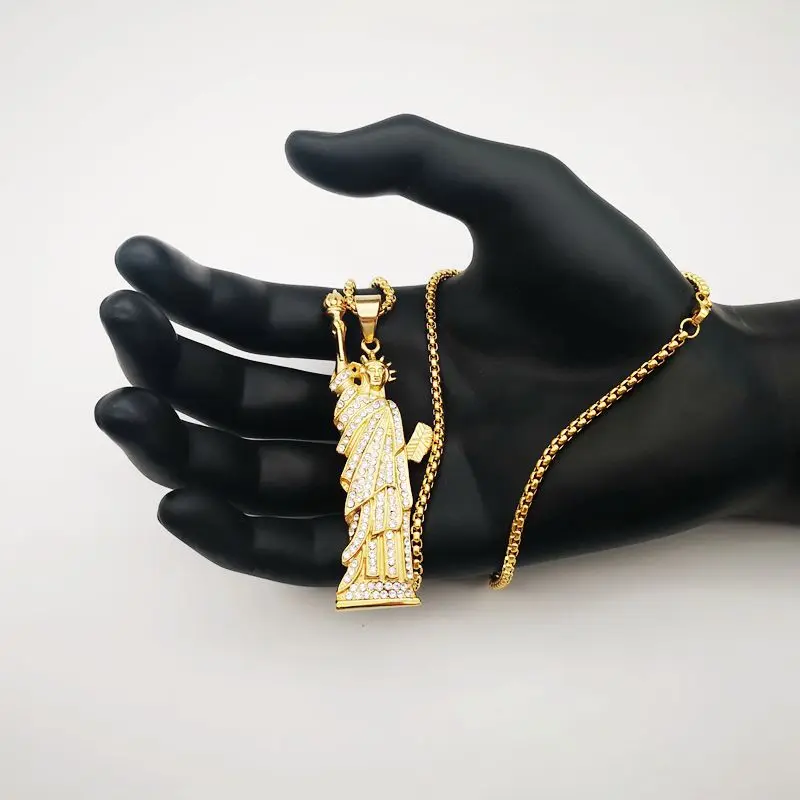Мужское ожерелье с подвеской из нержавеющей стали 316L, золотые стразы, американская Статуя Свободы, 2019