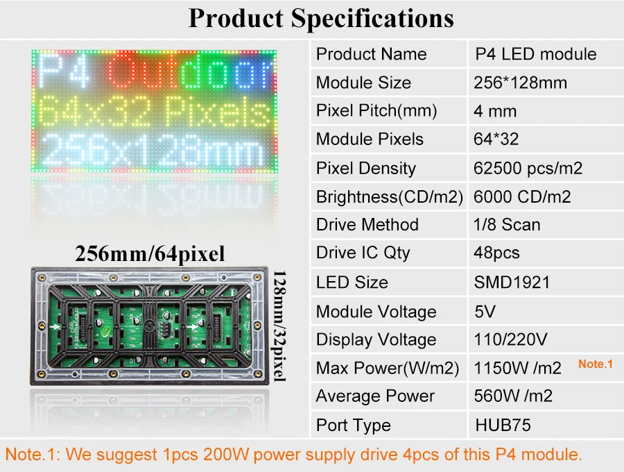 P4 открытый 256*128 мм 64*32 пикселей 1/8 сканирования 3in1 RGB P4 полный Цвет светодиодный Дисплей модуль