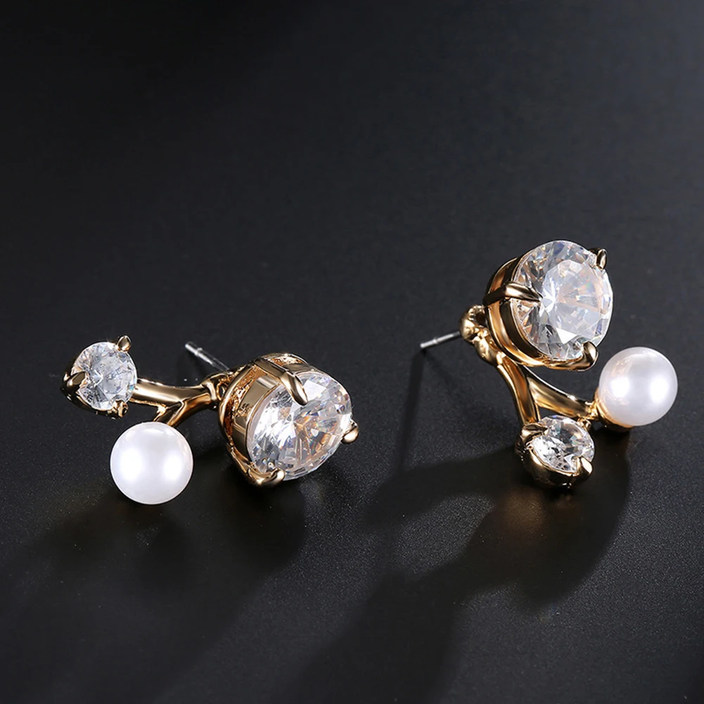 Сияющие циркон и искусственный жемчуг серьги, очень модные и притягательные.