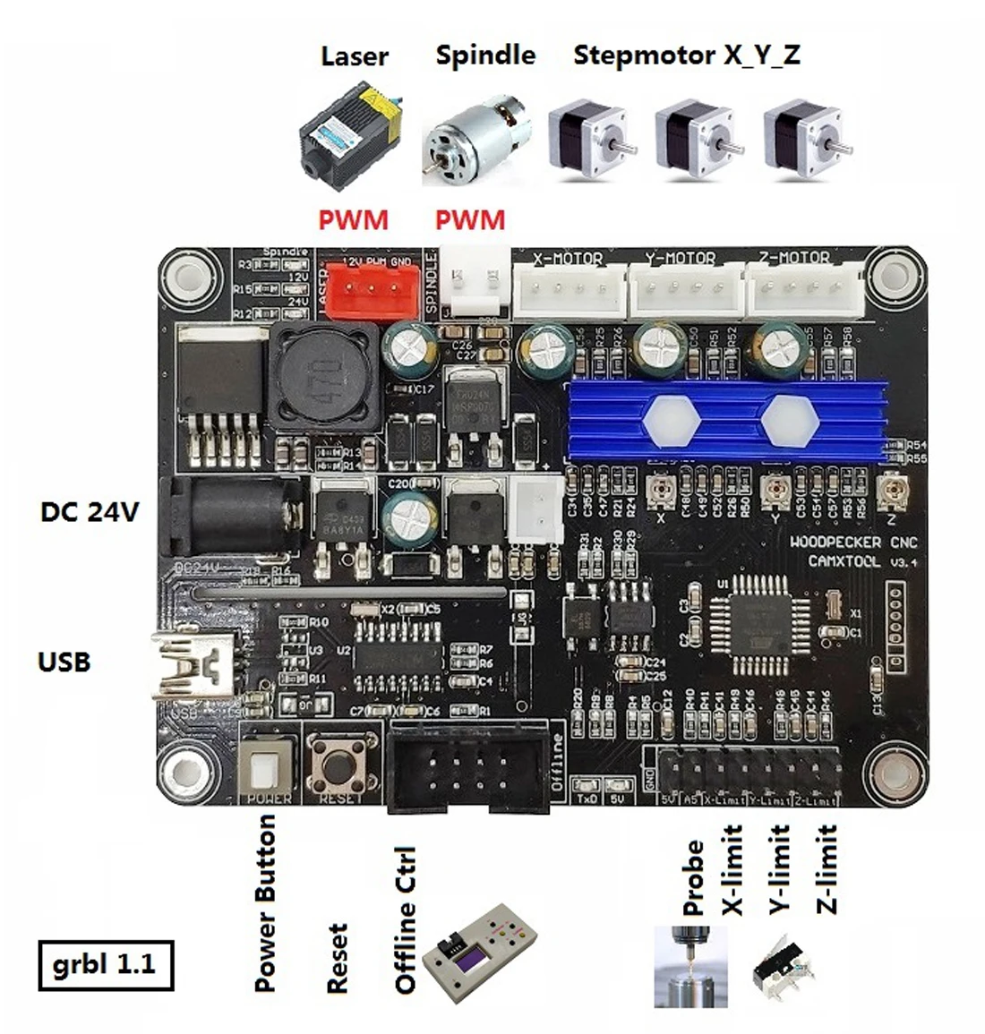 Комплект 2: Плата управления GRBL + кабель USD + Автономный контроллер