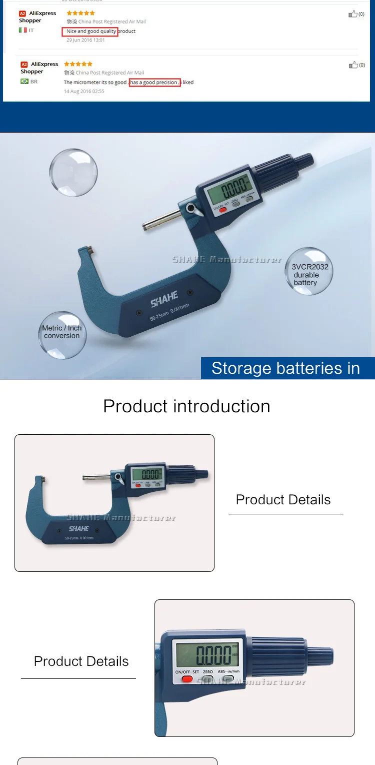1,2-пуговицы электронный цифровой микрометр