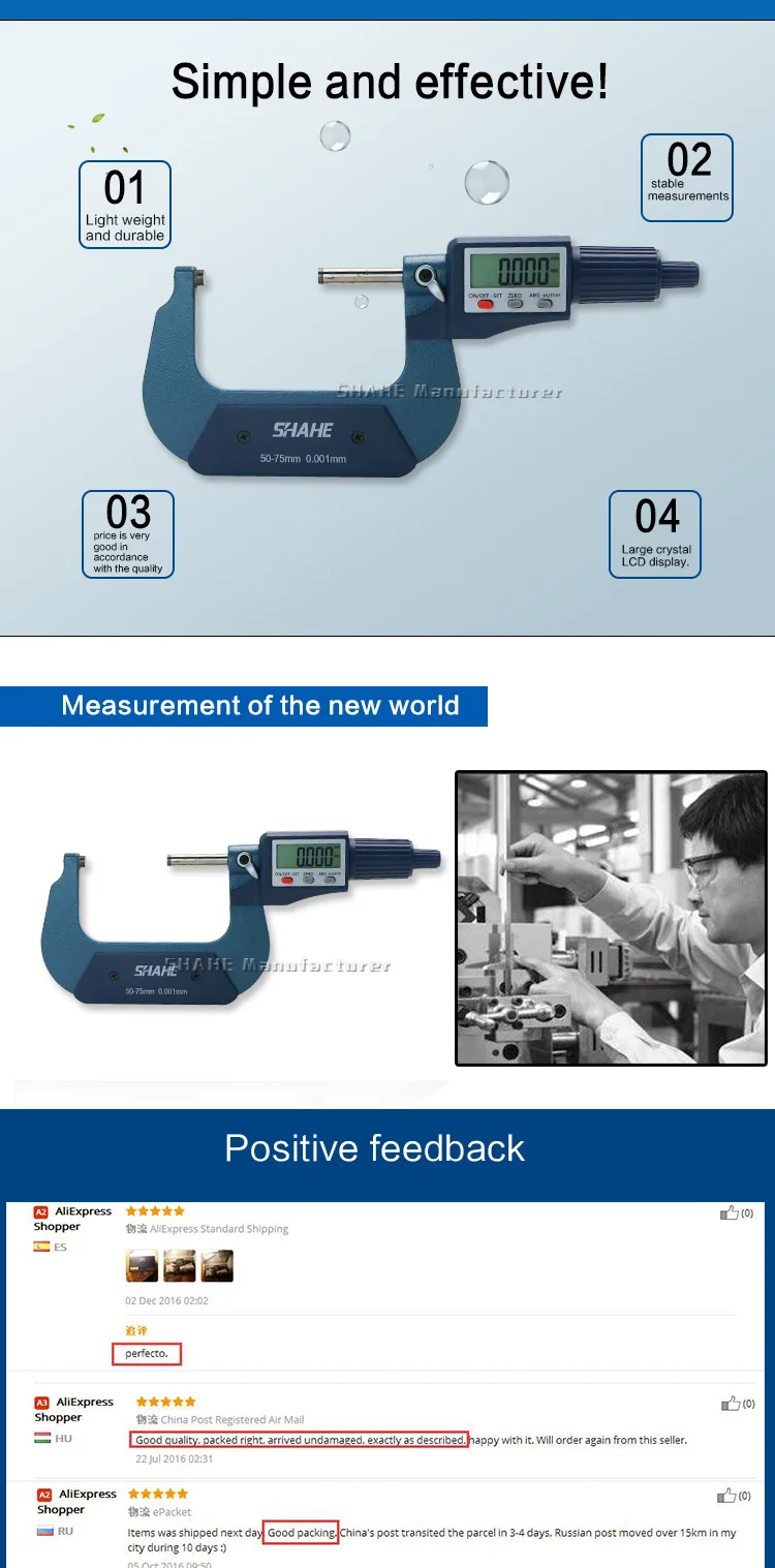 2. Разрешение: 0,001 мм/0,00005"