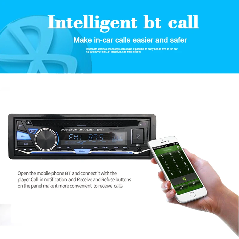 Автомагнитола 1 Din 12 В с DVD и CD-плеером, с BT 3252, MP3, беспроводное радио с дистанционным управлением