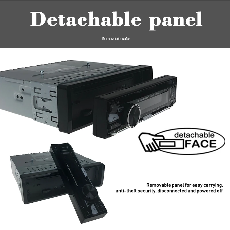 Это MP3-плеер, подходящий для большинства автомобилей. Встроенный синий зуб и микрофон, Поддержка вызовов громкой связи. Встроенный AUX, вы можете воспроизводить любимые песни с внешним портативным устройством. Вы можете наслаждаться забавным путешествием во время вождения с этим mp3-плеером.