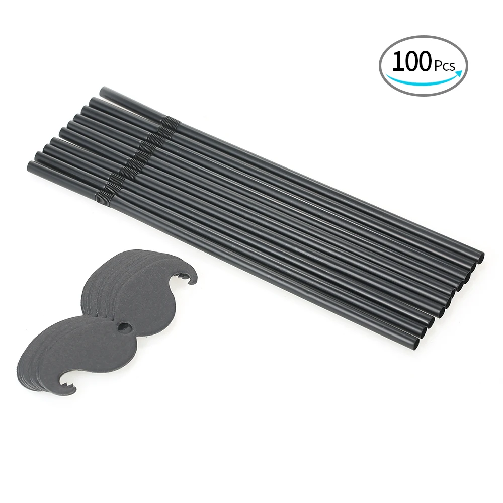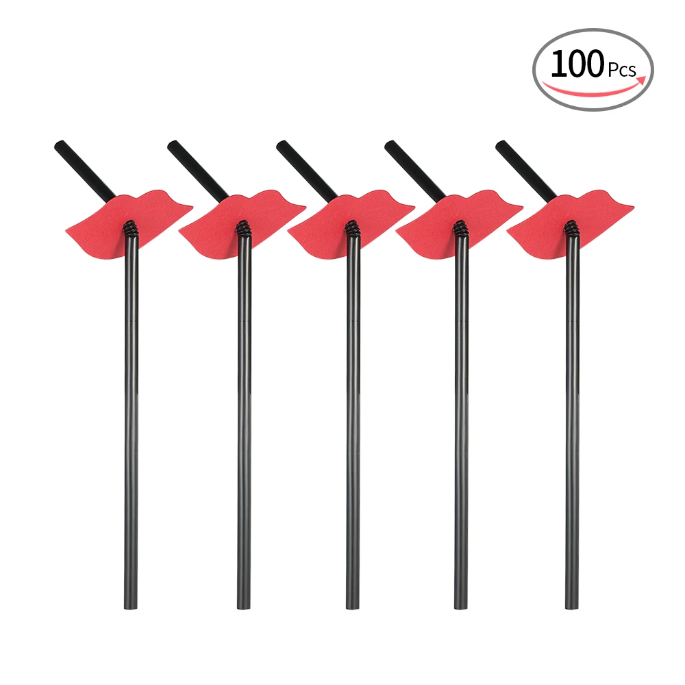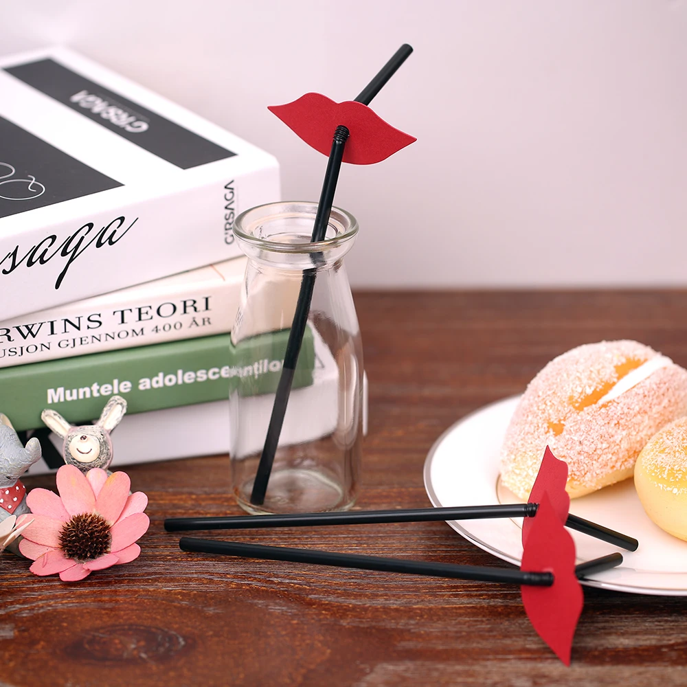 100 шт. одноразовые пищевые пластиковые соломинки для питья, день рождения, свадьбы, вечеринки, украшения, принадлежности, черная борода/красные губы
