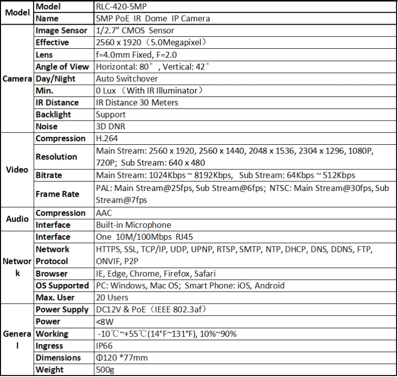 Невероятная ip-камера 5 Мп Super HDПо сравнению с камерами 1080p, RLC-420 hd камера безопасности 5 Мп имеет не только лучшую четкость, но и лучшую чистоту цвета и баланс, в эстетическом отношении. 1/2.7 "cmos-сенсор, объектив 4 мм и разрешение 2560x1920 (5 Мп) Играйте в трюк.
