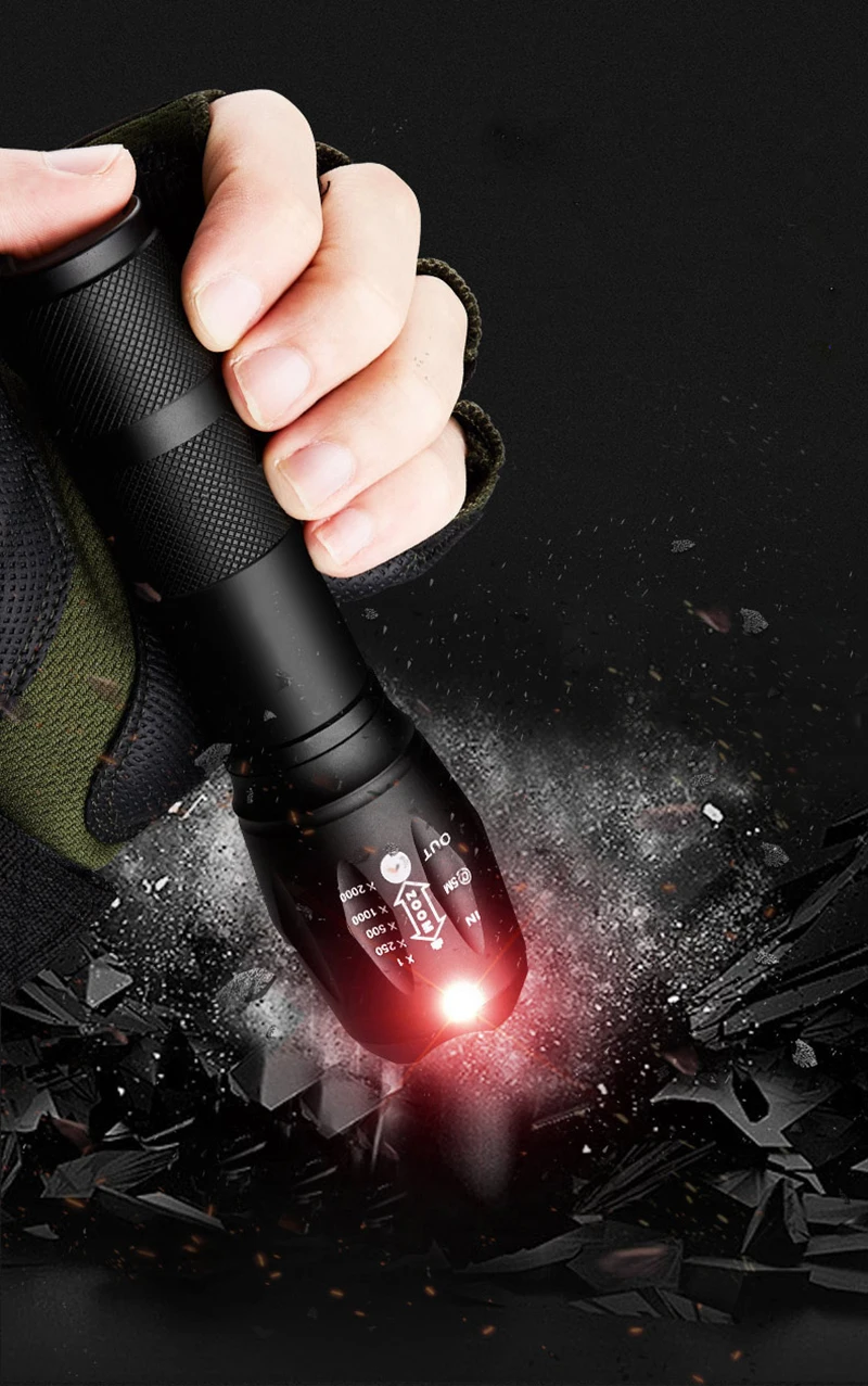 Упаковка D: 1 * фонарик (встроенный аккумулятор) , 1 * зарядное устройство Micro USB, 1 * Зарядное устройство переменного тока (EU/US/AU/UK) , 1 * Автомобильное зарядное устройство, 1 * нейлоновая тканевая крышка