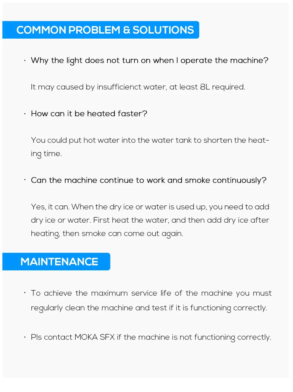1. Машина для сухого льда мощностью 6000 Вт. Убедитесь, что для запуска машины используется достаточно источника питания. Если это 220 В, необходимо использовать источник питания 16A 220 В. Домашняя плата с общей вилкой питания не может поддерживать такой большой ток.