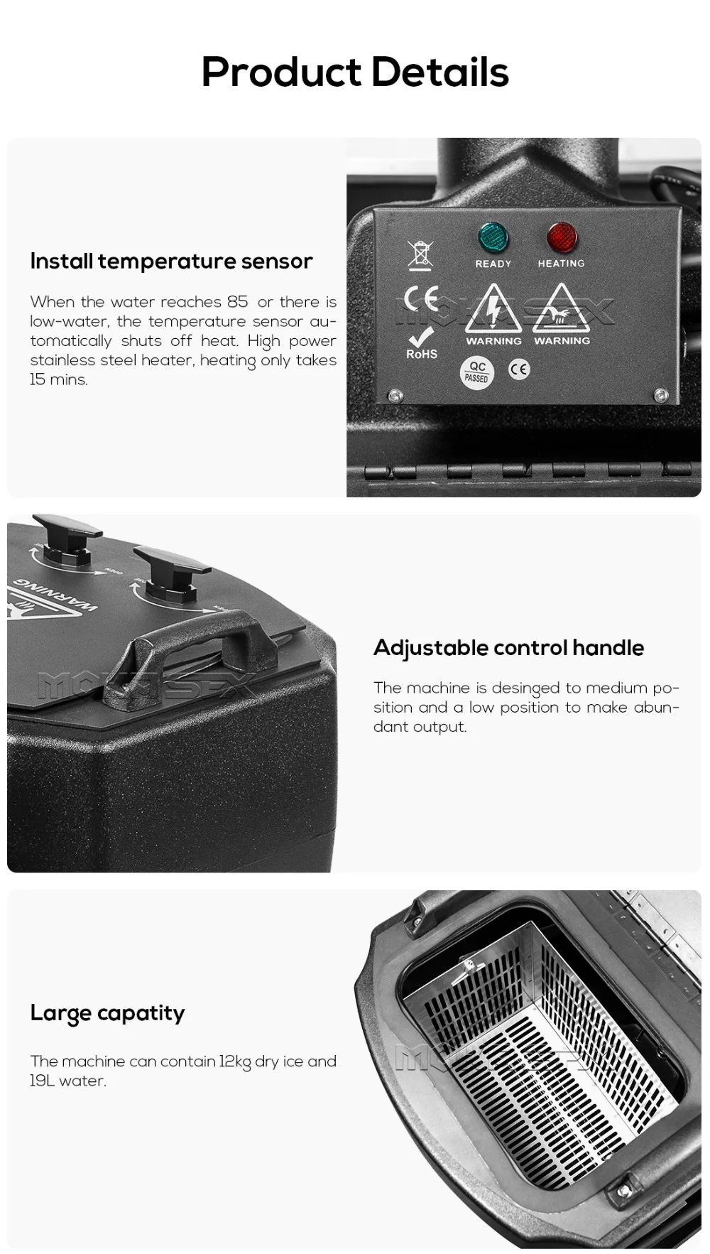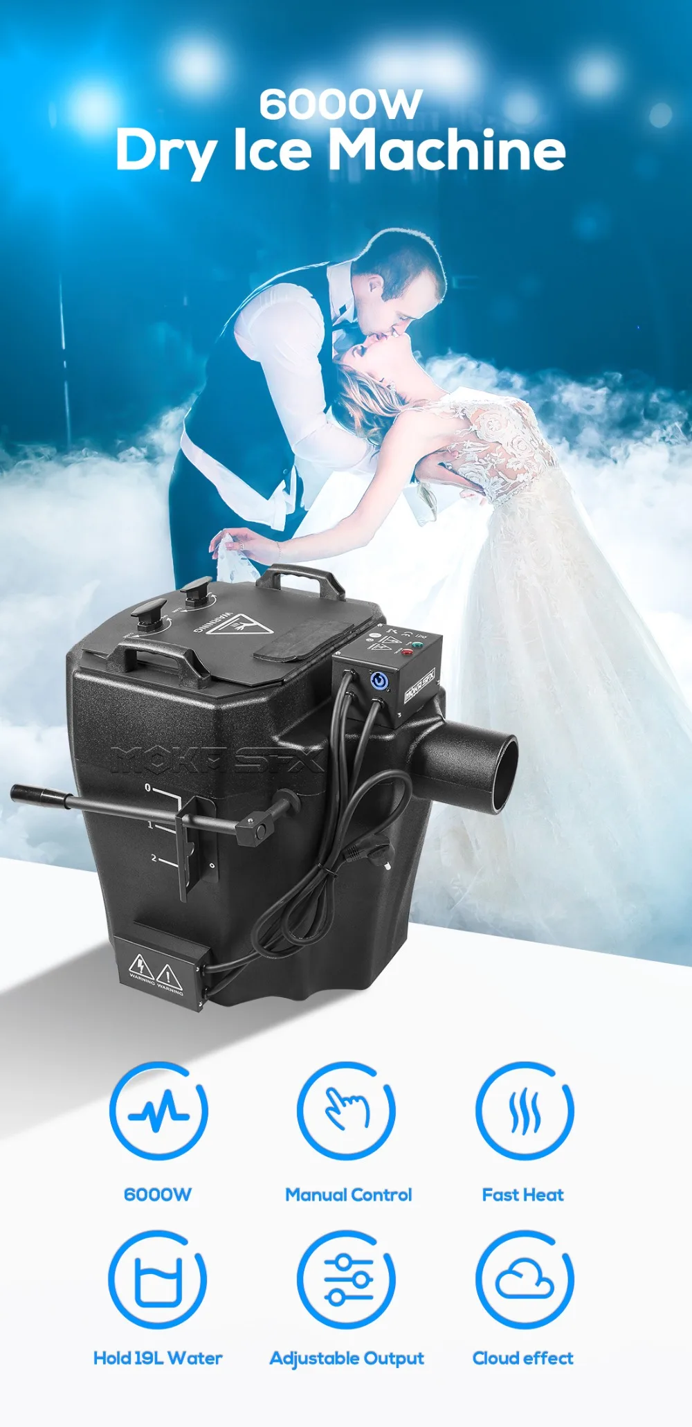 Машина для сухого льда 6000 Вт-это профессиональная машина для сухого льда, которая производит Толстый белый туман, который обнимает пол и рассеивается, не поднимаясь. Это мощная машина, которая нагревает достаточно воды 19л, чтобы создать туман от сухого льда 12л, чтобы обеспечить более 10 минут времени работы. Двойные нагреватели позволяют быстрее нагревать и перерабатывать, датчик низкой воды повышает безопасность и регулируется, многоуровневый рычаг управления позволяет легко управлять выходом и потоком сухой машины для тумана льда.Особенности• Профессиональная машина для сухого льда создает Толстый белый туман, который обнимает пол, очень приятный и Заземленный, обнимающий низкий эффект тумана