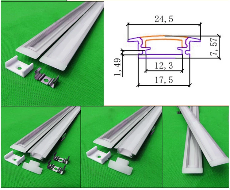 Параметры: Напряжение: 12VDC Мощность: 7 Вт/50 см Материал: алюминиевый профиль + чехол из поликарбоната + светодиодный ремешок 5630 Размеры L500 * W24.5 * H7MM (Чип на плате) Срок службы: 50000 часов IP Класс: IP20 Цвет WW/W (теплый белый 3000K, белый 6000K) Люмен 120LM/W Запчасти/комплект (монтажный зажим * 2, Торцевая крышка * 2, винты * 2) Крышка молочно-белый/прозрачный Выходной кабель: 1 боковой кабель (по умолчанию) 2 боковых кабеля (пожалуйста, оставьте сообщение) 3. Легкий Соединитель с обеих сторон (0,4 USD/комплект, пожалуйста, свяжитесь с продавцом) 4. Коннектор питания постоянного тока с обеих сторон (0,8 USD/комплект, просьа связаться с продавцом) Блок питания 12 В/драйвер не входит в комплект (необходимо покупать отдельно) В основном Особенности: 1. Легко установить. 2. Молочный/прозрачный чехол на выбор 3. Низкое энергопотребление. 4. Безопасно для использования (работает с напряжением 12 В). 5. Широко используется в шкафу, кухне и мебели