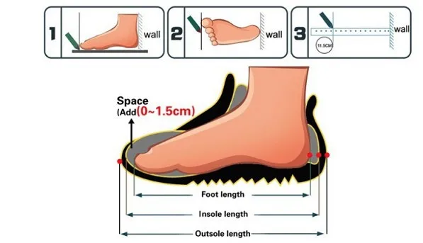 Стельки Длина = стопы Длина + (0,5-1 см) пространство