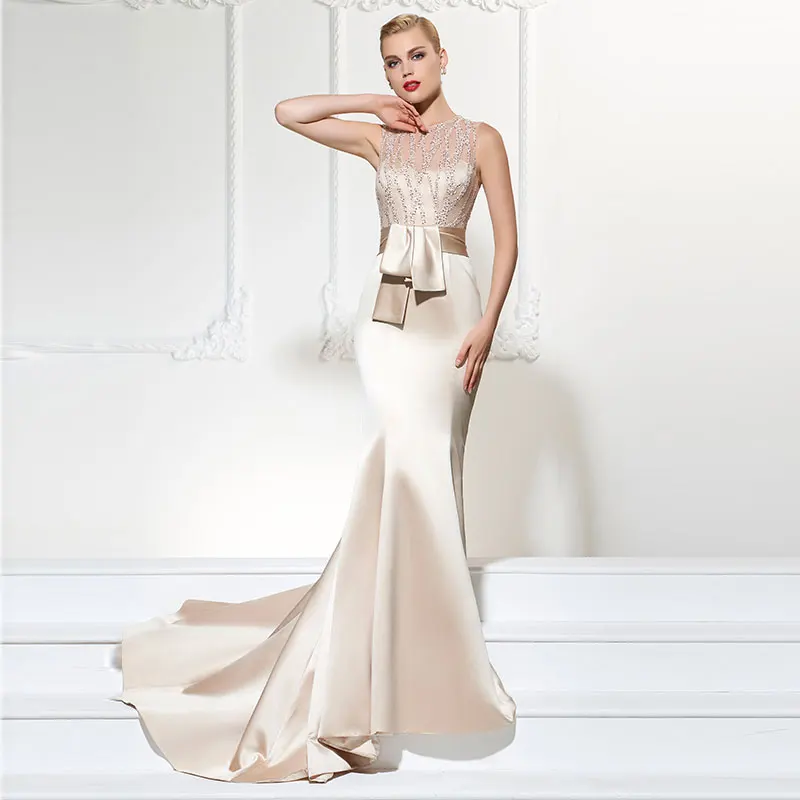 Вечерние платья цвета шампанского, коллекция 2020 года, жемчужное кружевное платье с поясом и шлейфом в пол, женское вечернее платье русалка