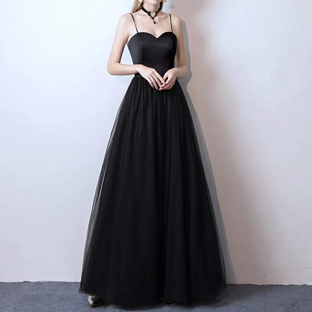Dressv вечерние платья, элегантное черное длинное платье без рукавов на бретельках, женское вечернее платье трапециевидной формы, платья знаменитостей 2020