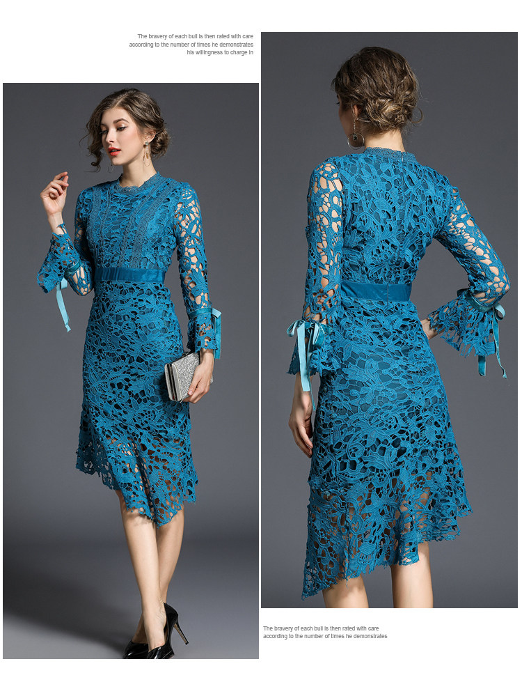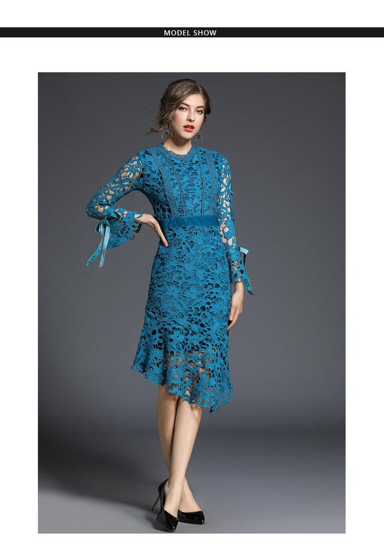 Весеннее асимметричное ажурное синее кружевное платье для женщин, 2018 г., платье Vestiti Donna, посылка, облегающее платье, Drees Kleider Damen K6151