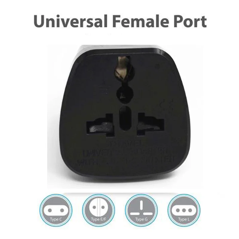 Универсальный адаптер для путешествий с универсальной розеткой может принимать все виды вилок по всему миру.