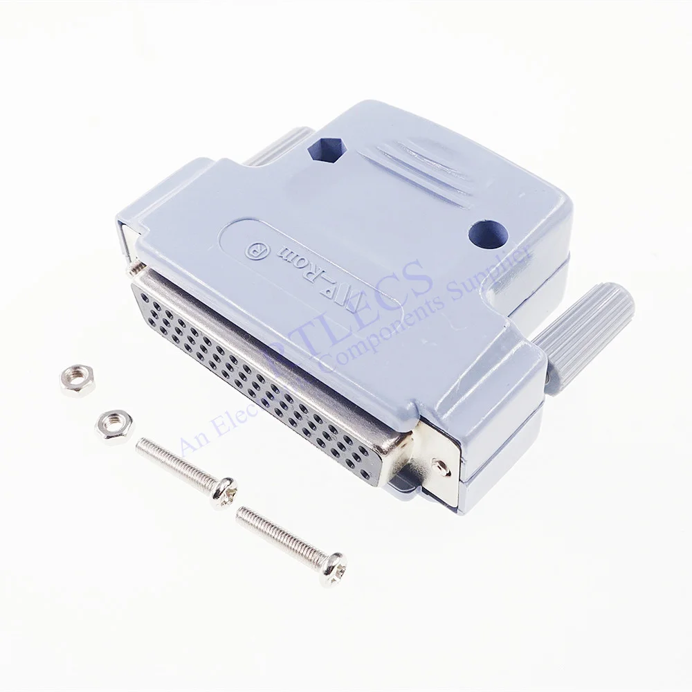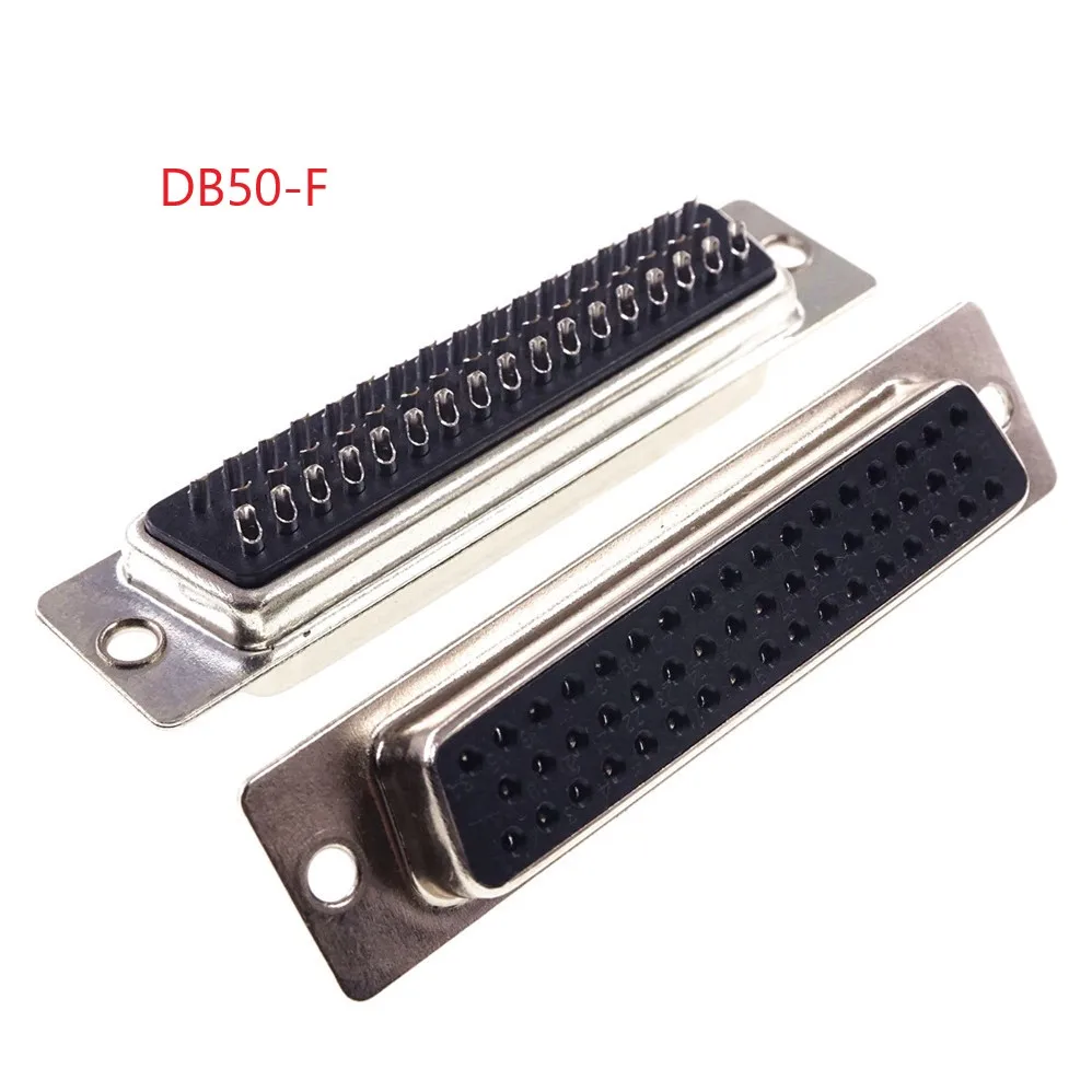 Разъем D-Sub, 50 позиций, 3 ряда, гнездо, гнездо, провод, припой, тип 50 Pin, промышленный уровень RoHS + крышка, пластиковый материал