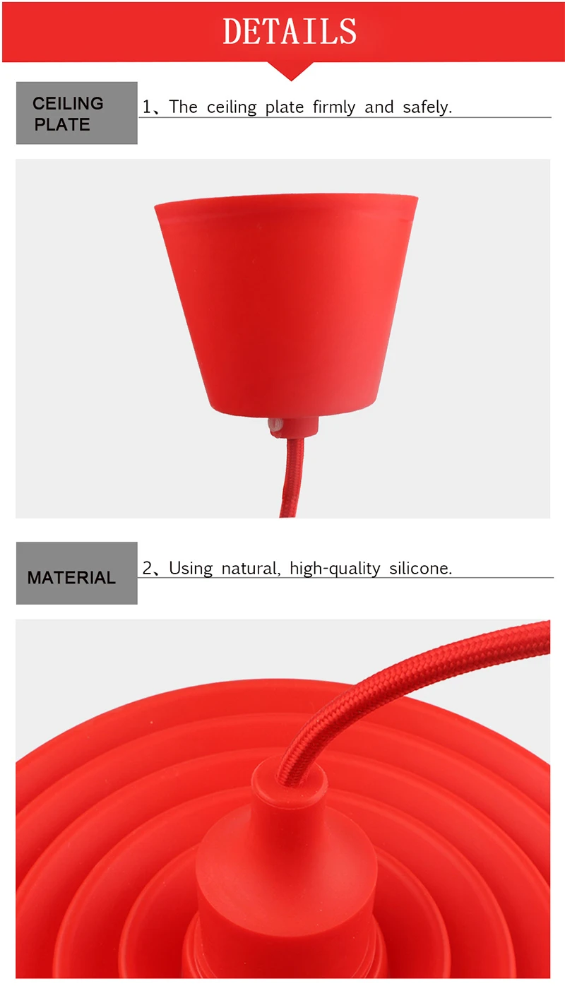 Описание: Тип: подвесной светильник из силикагеля Тип цоколя: E27 Материал: силикагель Источник света: лампа Эдисона или Светодиодная лампа Напряжение: 90-260 В переменного тока Мощность: Макс 60 Вт Размер: длина 30 мм x диаметр. 24 мм Вес нетто: около 290 г Площадь освещения: 10-15 м2; Применение: Идеально подходит для гостиной, столовой, спальни, зала, отеля, кафе, ресторана, бара, коридора и т. д. В комплект входит: 1 X подвесной светильник (лампа в комплект не входит)