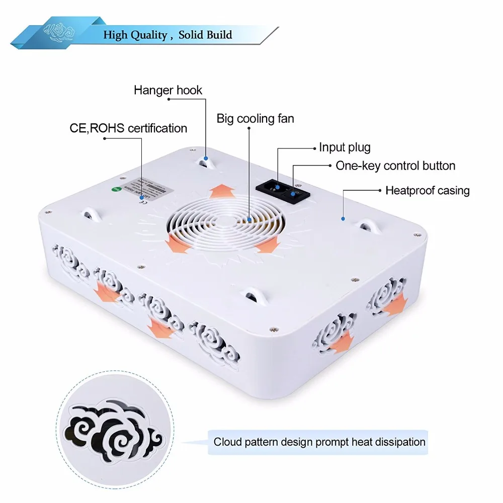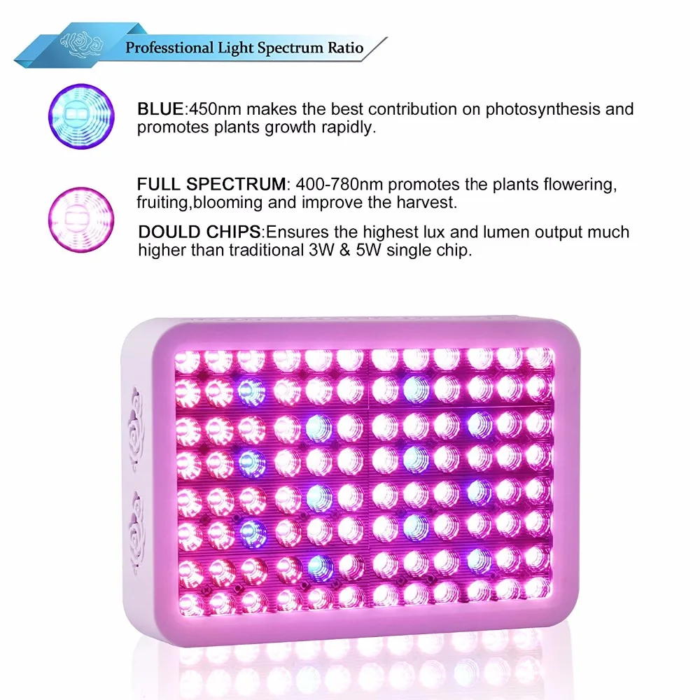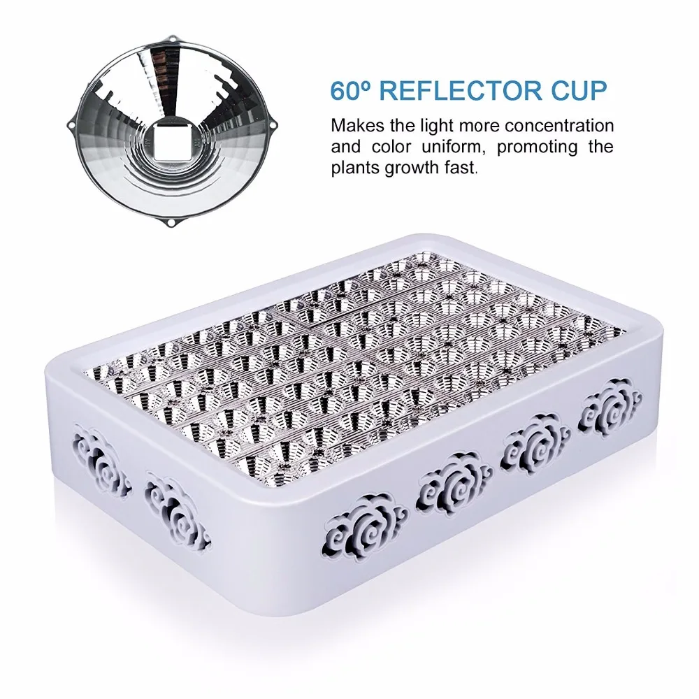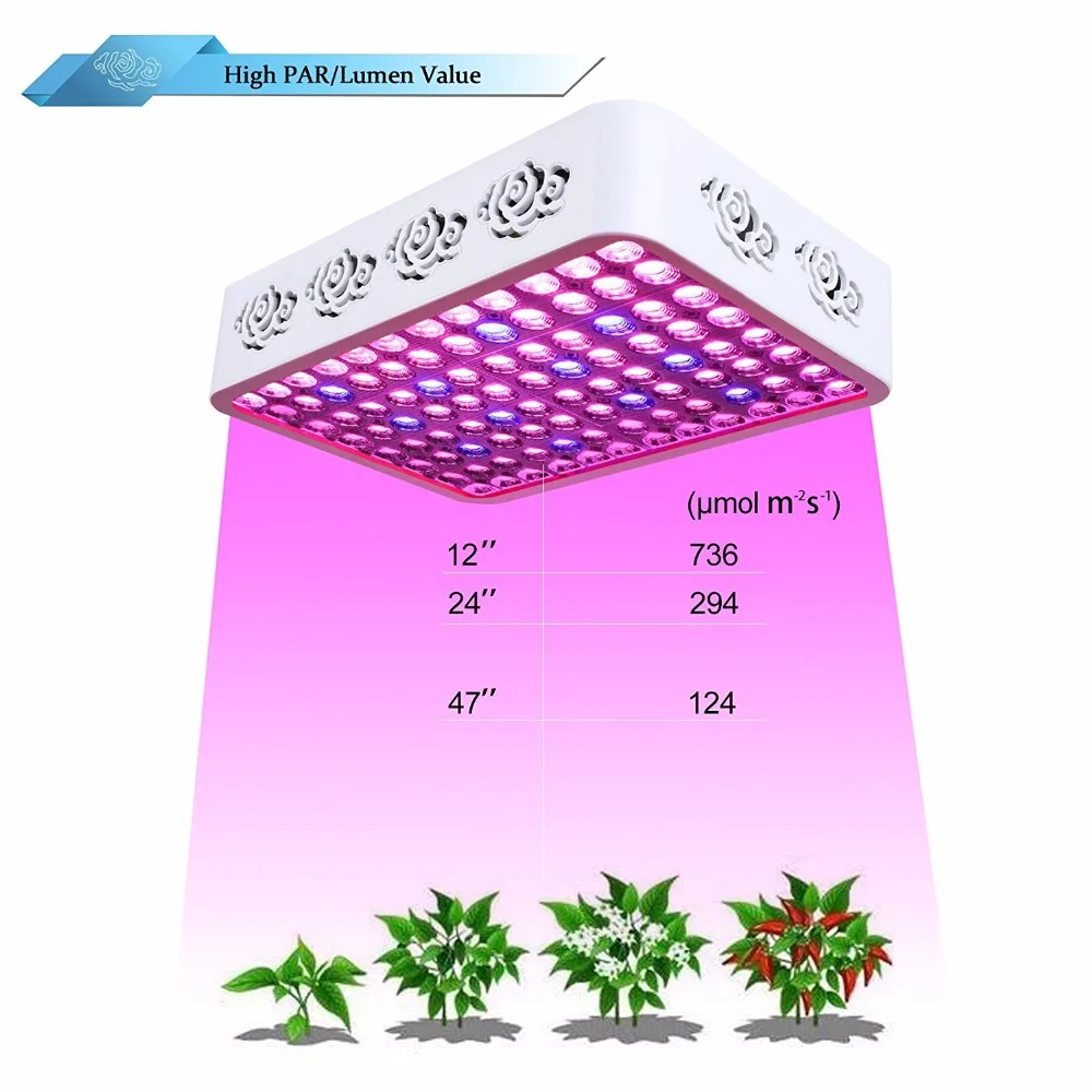 Светодиодный светильник s стоит больше денег спереди, но вы сэкономите около 50% энергопотребления светильник, затраты на охлаждение (очень дорого летом) и годовую замену лампы. Следуйте инструкциям по рекомендуемой области покрытия, и ваши светодиоды поразят вас своей доходностью. По сравнению с HPS/MH лампами светодиоды уменьшат большую теплоотдачу, а также значительно снижает риск возникновения пожара, особенно в закрытом пространстве. Наш светодиодный светильник для выращивания в основном красный и синий спектр, эти два спектра являются пиком поглощения растений.