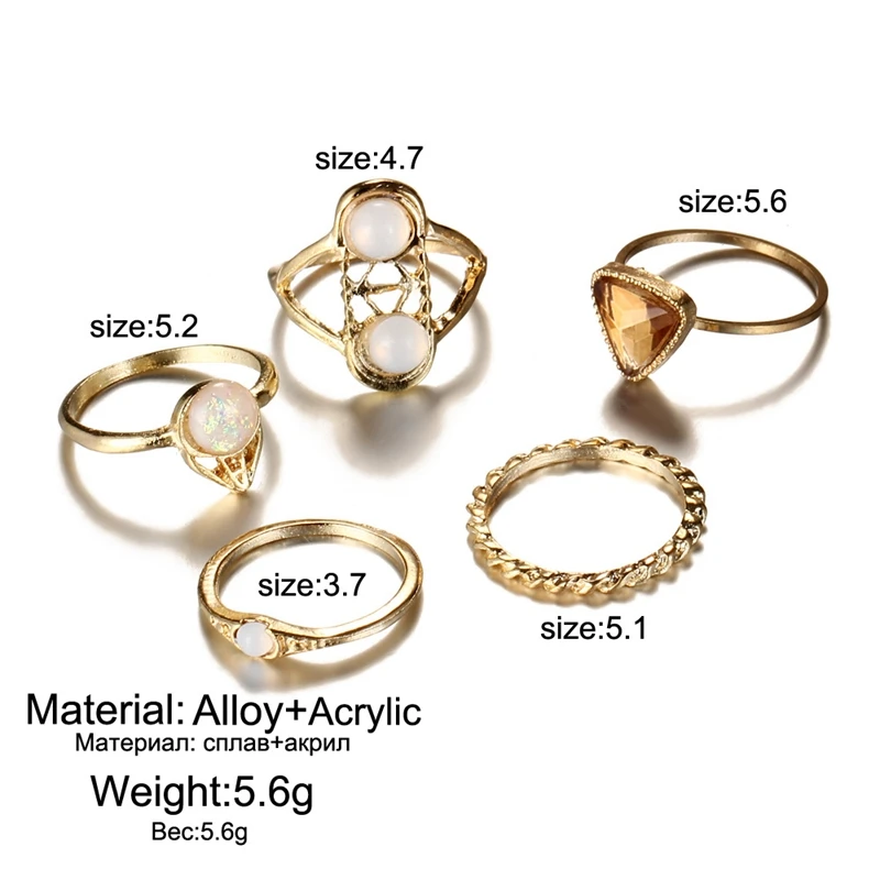 Набор Колец золотого цвета в стиле панк, ретро, в стиле панк, 5 шт., бирюзовый опал, камень, резное, индивидуальное кольцо, оптовая продажа