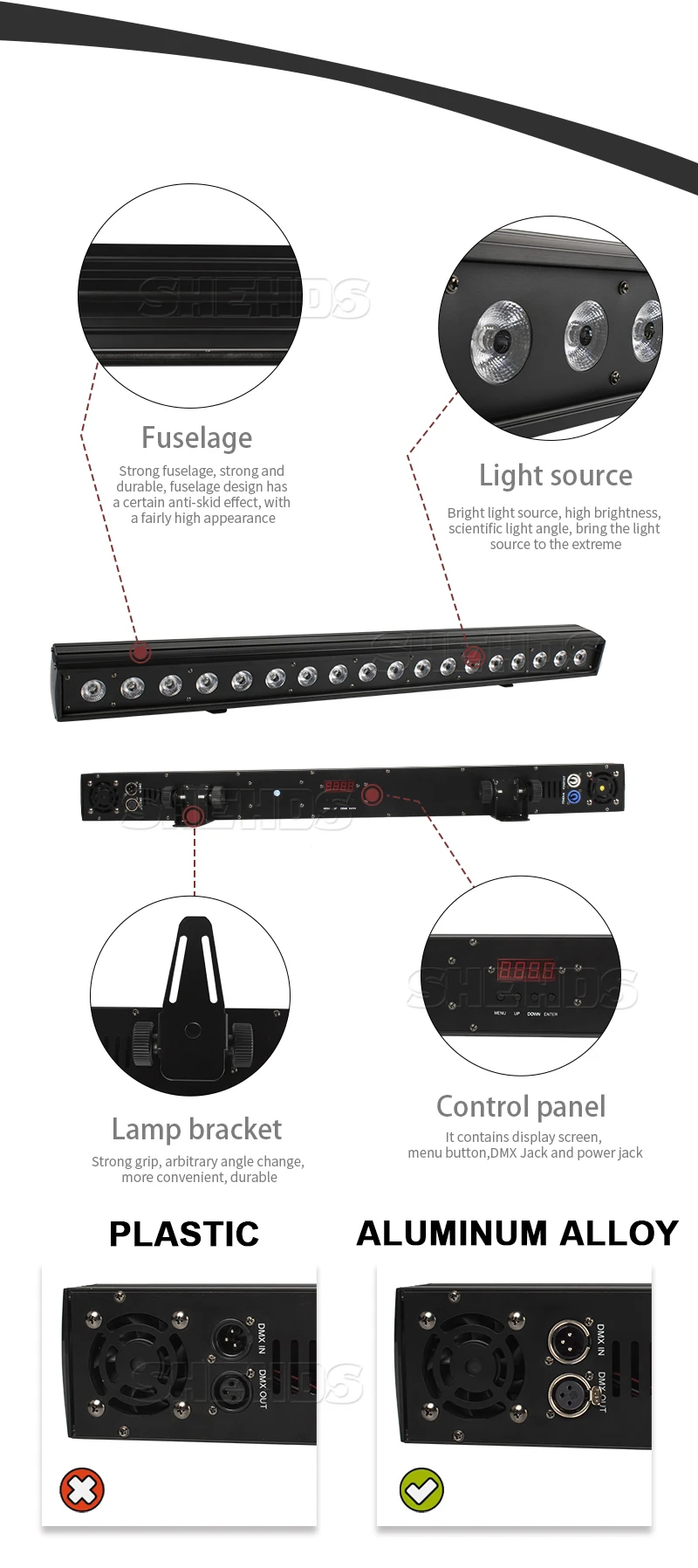 DMX Каналы управления:9 Каналы, международный стандарт DMX512,3-Pin