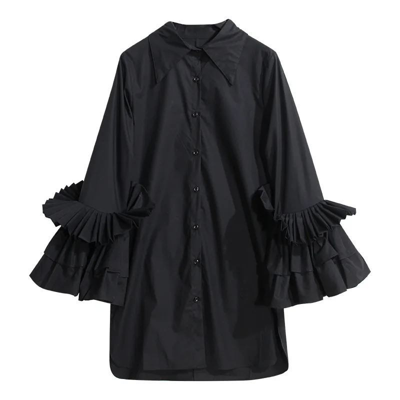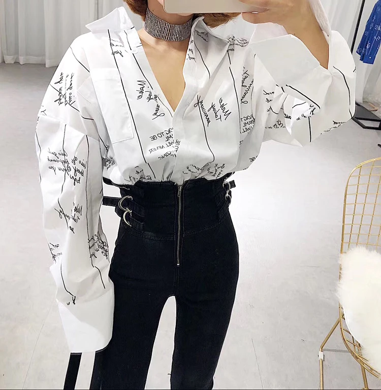 Женская прозрачная блузка с длинным рукавом белая и черная в европейском стиле