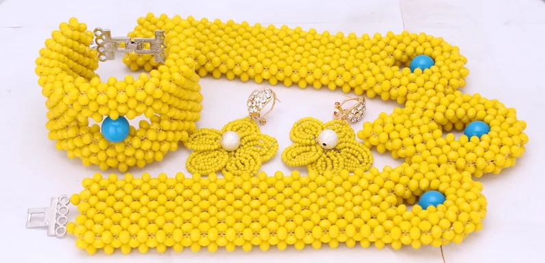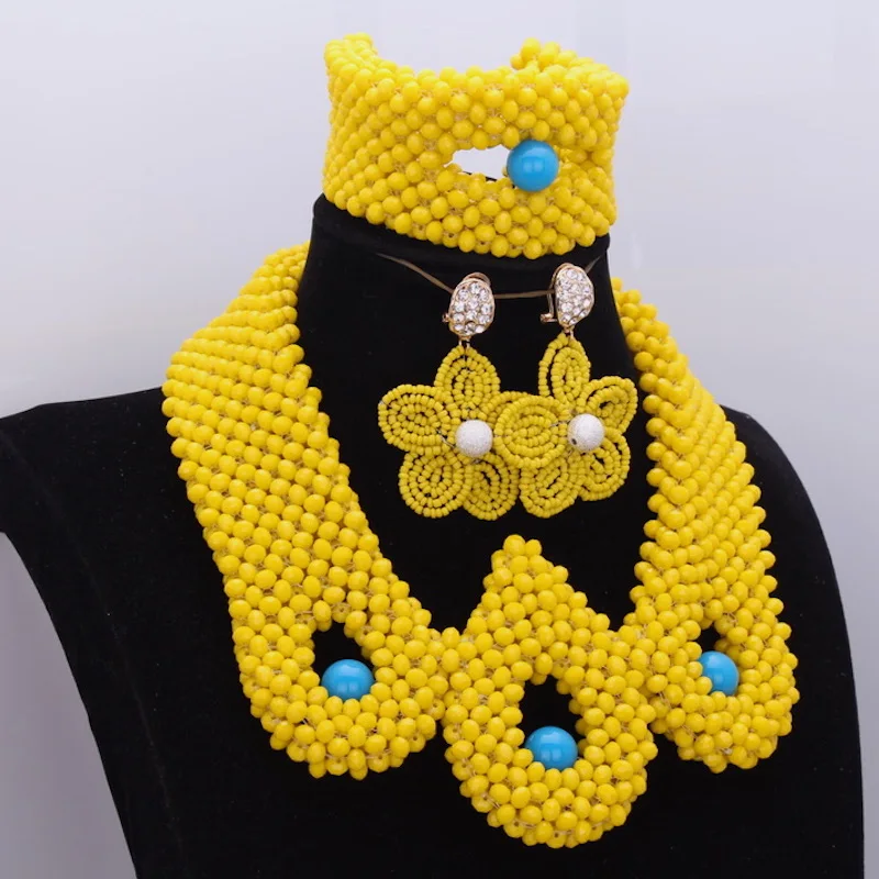 Набор ювелирных изделий Dudo желтый набор нигерийских бусин ювелирные изделия с цветком серьги сова животное нигерийское ожерелье набор ювелирных изделий
