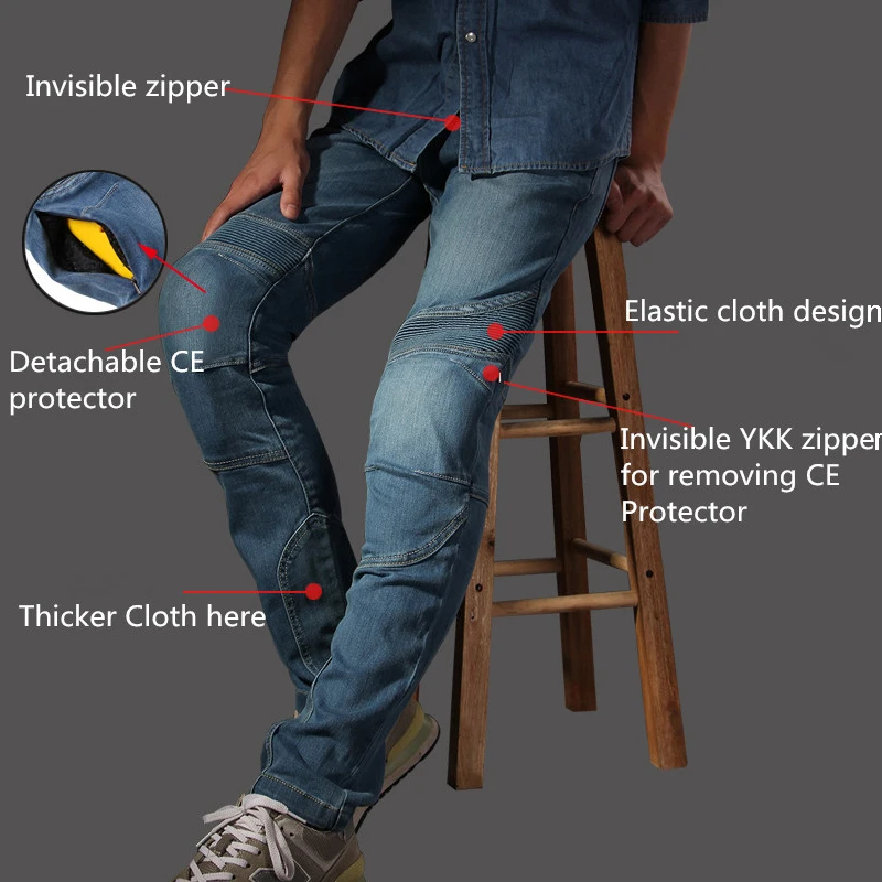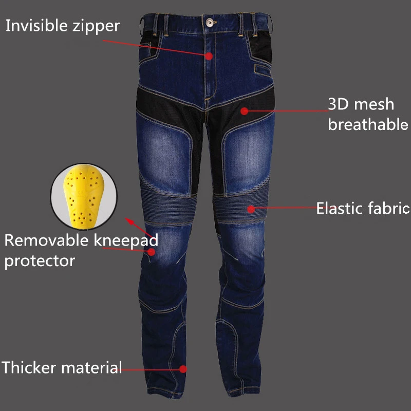 * Гладкий дизайн на передних коленях и талии сзади, позволяет свободно перемещаться и чувствовать себя комфортно во время езды на мотоцикле.