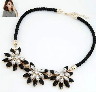 2016 Европейская и американская Ретро Мода роскошная Геометрическая Имитация Алмазный полный Алмазный шаблон кожаный веревочный женский ОжерельеНам $3.25