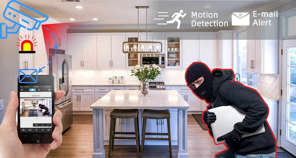 Обнаружение движения и оповещение по электронной почтеМожно настроить область, которую вы хотите контролировать, когда она срабатывает, она отправит сообщение на вашу электронную почту, вы можете получить информацию из первых рук, независимо от того, когда и где вы находитесь.
