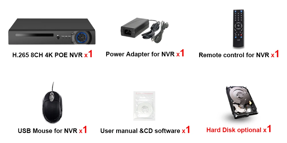 1 сетевой видеорегистратор 8CH 4K POE NVR;