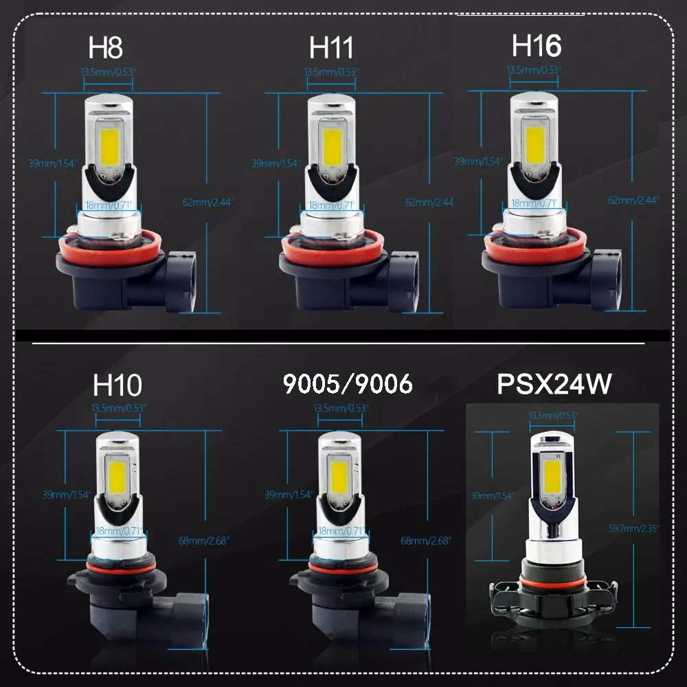 VANSSI 2 шт. H8 H11 светодиодные лампы H16 H10 9145 HB3 9005 HB4 9006 Светодиодные Автомобильные противотуманные фары супер яркие 2400lm DC12-24V вождения автомобиля DRL лампы