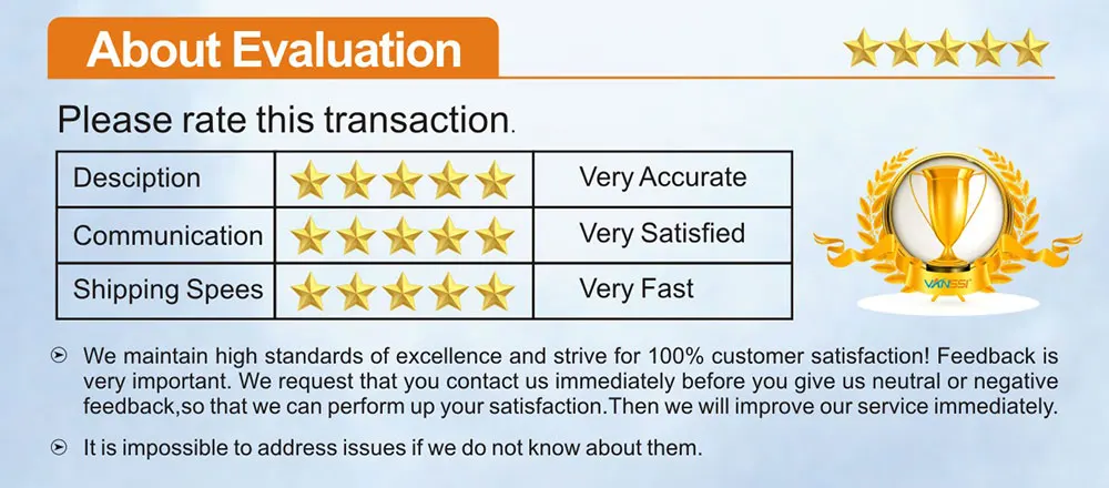 <5> во всех случаях покупатели оплачивают стоимость доставки за свой счет, чтобы вернуть товары для обмена или возврата средств. Мы будем нести ответственность за почтовые расходы на замену. Возврат средств будет осуществлен при получении возвращенного товара.