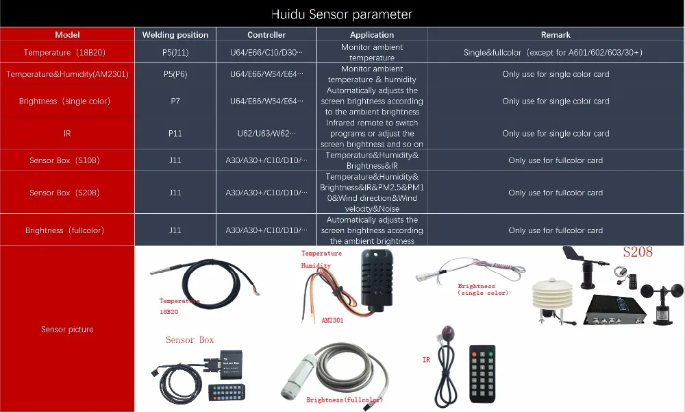 Huidu датчики температуры 18B20 и темп-влажность AM2301 Одиночная яркость