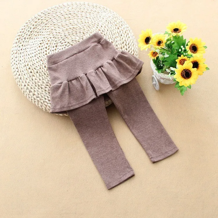 Леггинсы для девочек хлопковые однотонные с цветочным краем на осень/зиму 2020 |