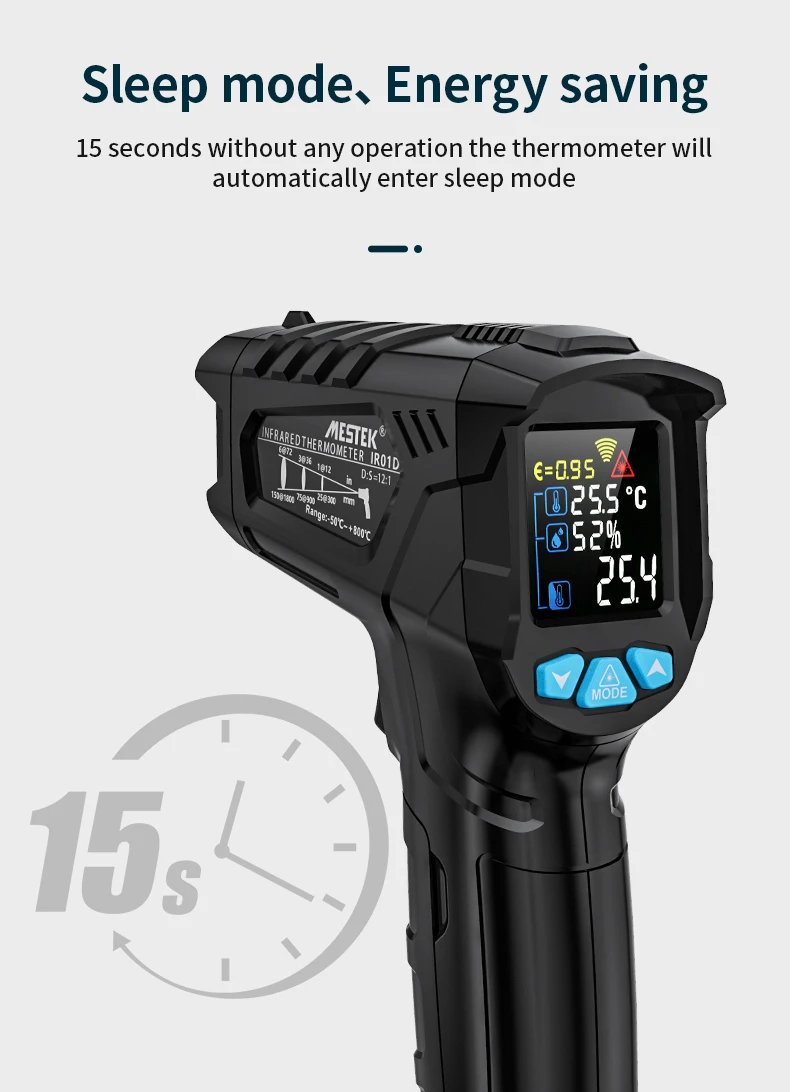 15 секунд без какой-либо операции термометр автоматически войдет в режим сна
