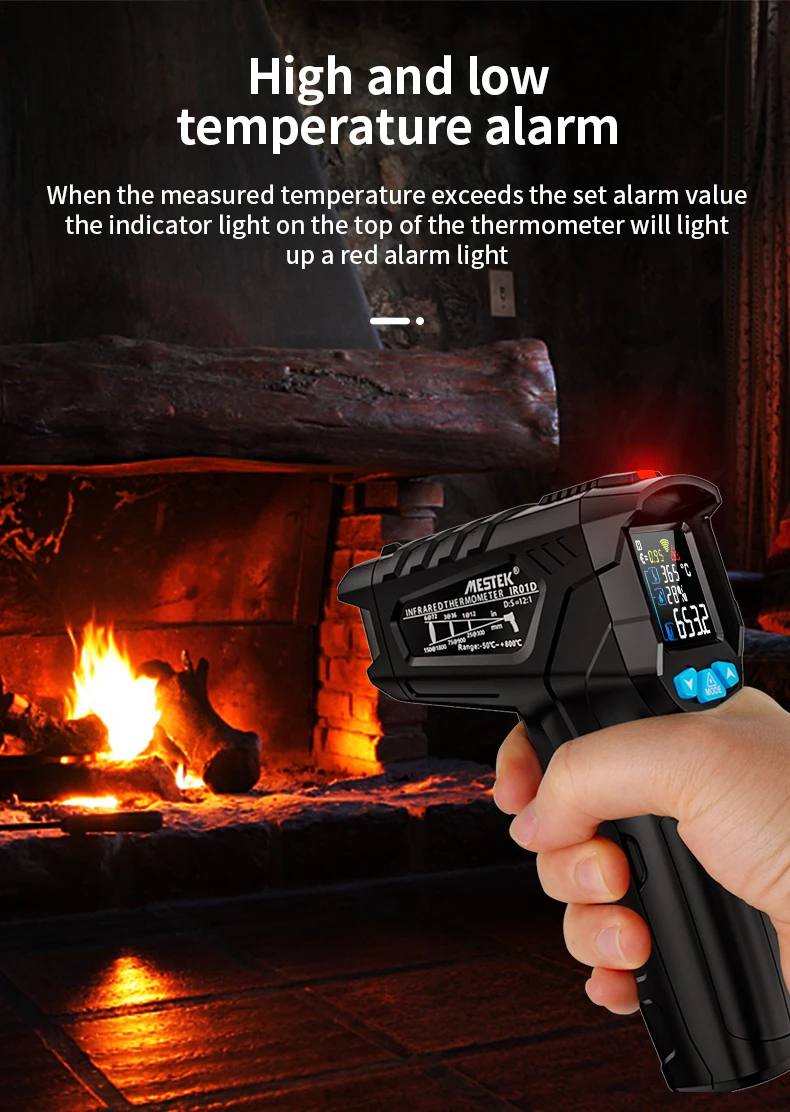IR02C:-50 ~ 800C, измерение температуры зонда, температура окружающей среды:-10 ~ 60C, влажность: 0% ~ 100% RH, точка росы плесени